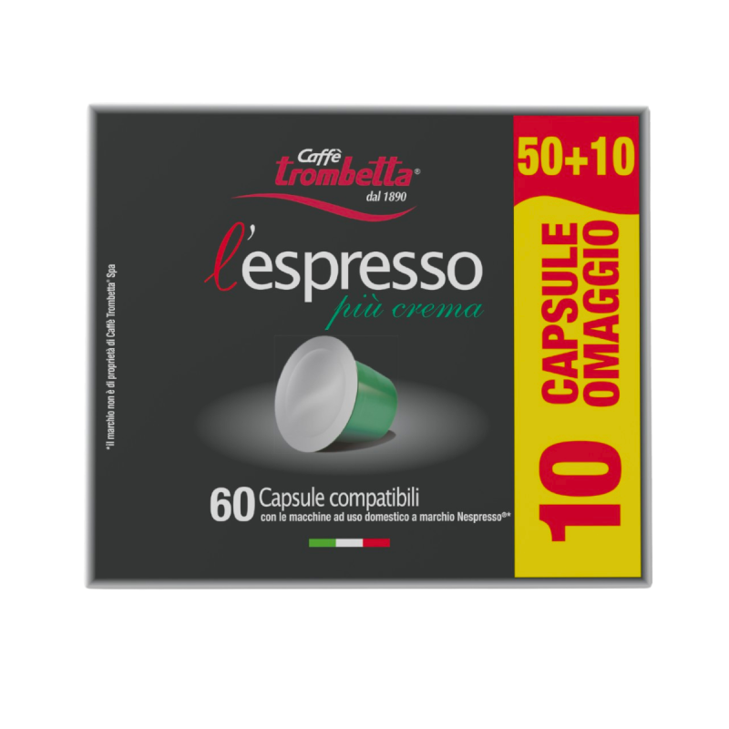 Caffè Trombetta L’Espresso Più Crema – 1 Confezione da 50 Capsule + 10 Omaggio