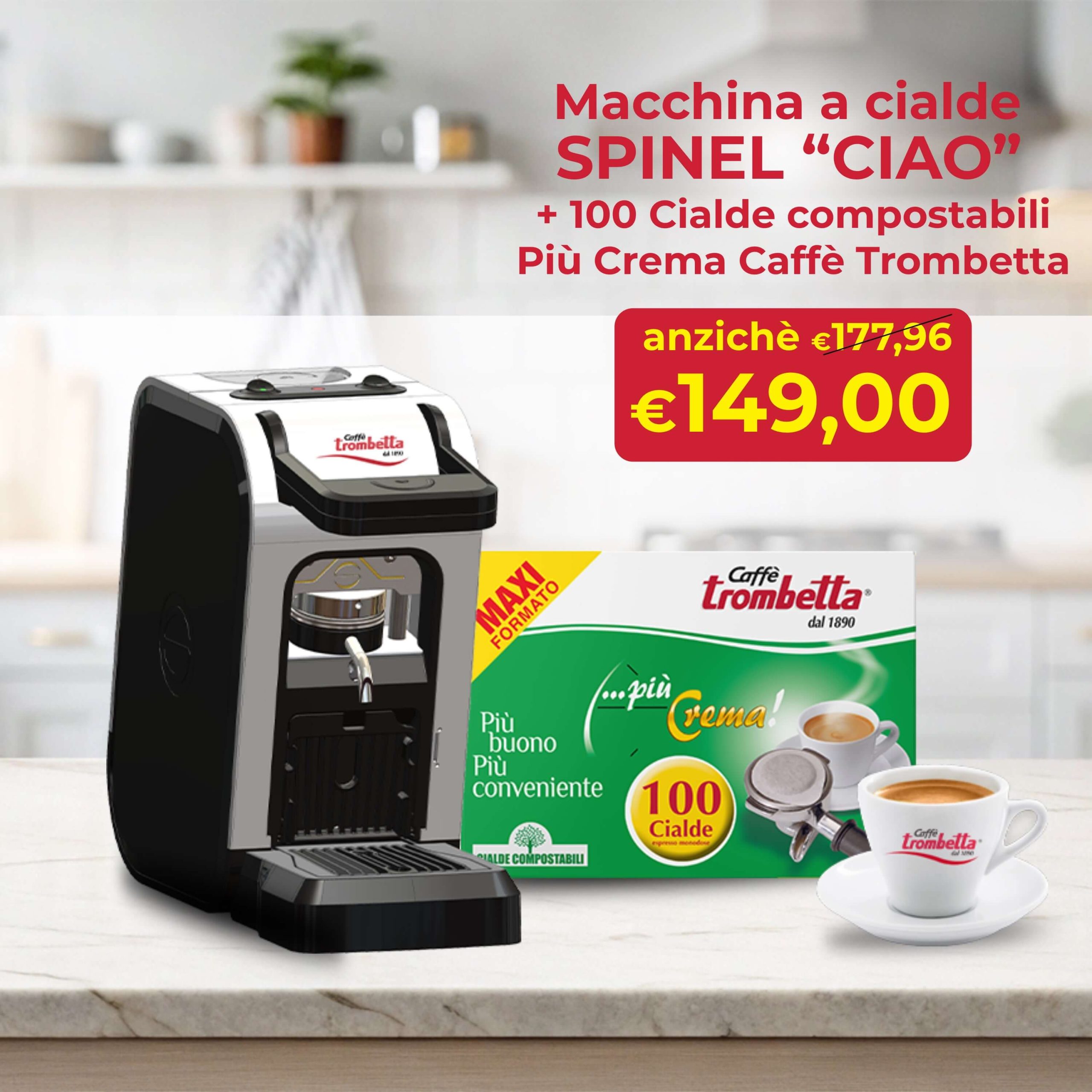 Pacchetto speciale: Macchina A Cialde “Spinel Ciao” + 100 Cialde Compostabili Più Crema Caffè Trombetta